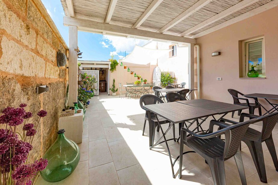 Il cortile è a disposizione dei clienti della camera DERETU per riposare, leggere e mangiare.Il cortile è condiviso con Marco e Valentina,